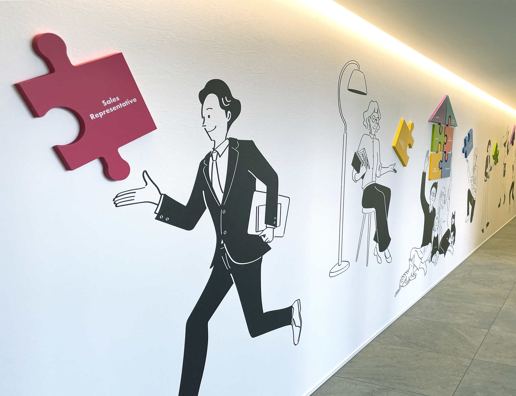 ウォールグラフィックの一部、パズルの部分はカルプで立体となっています。